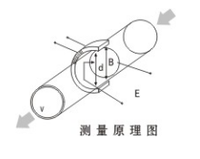 測(cè)量流量時(shí),導(dǎo)電性液體以流速V流過(guò)垂直于流動(dòng)方向的磁場(chǎng),導(dǎo)電性液體的流動(dòng)感應(yīng)出一個(gè)與平均流速成正比的電壓,其感應(yīng)電壓信號(hào)通過(guò)與液體直接接觸的電極檢出。對(duì)于同一流量計(jì)S、B、d為常量,所以流量與感應(yīng)電動(dòng)勢(shì)E(或流速V)的大小成正比。
