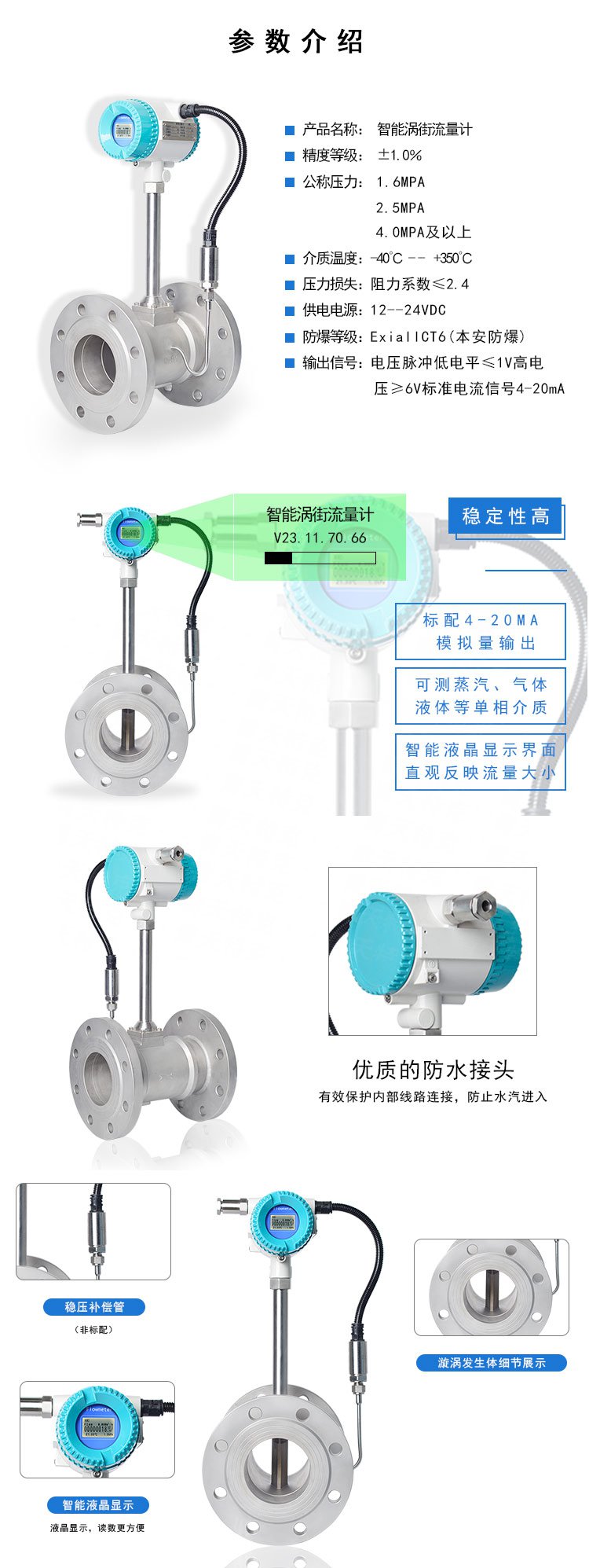 用于工業管道介質流體的流量測量,如氣體、液體、蒸汽等多種介質。