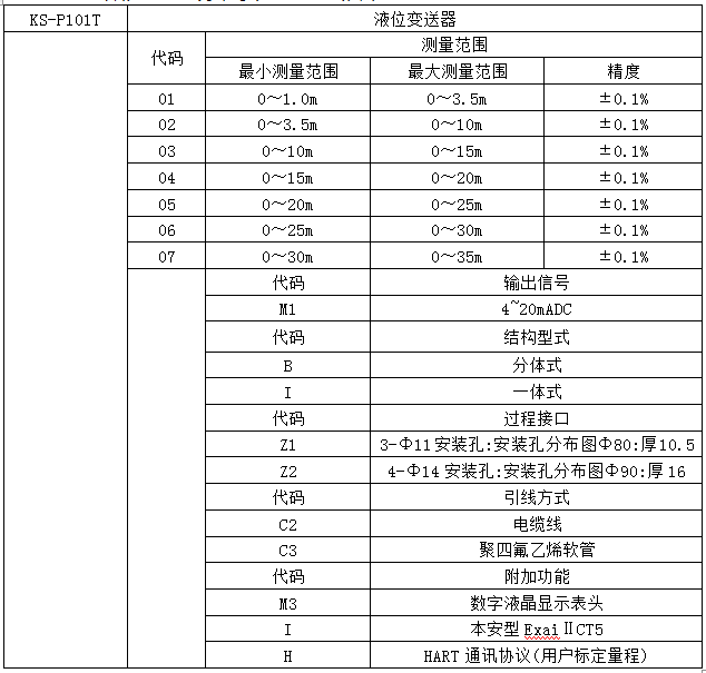 本產品為分體式結構型式,并有電纜、防腐型兩種介質測量類型。防腐型產品可以抵御多種腐蝕性液體的侵蝕,能夠最大限度的滿足客戶的需要。 KS-P101T系列液位變送器產品分為普通型和本質安全防爆型兩種型式,防爆型產品能夠廣泛用于工業現場中各種惡劣及危險場所。