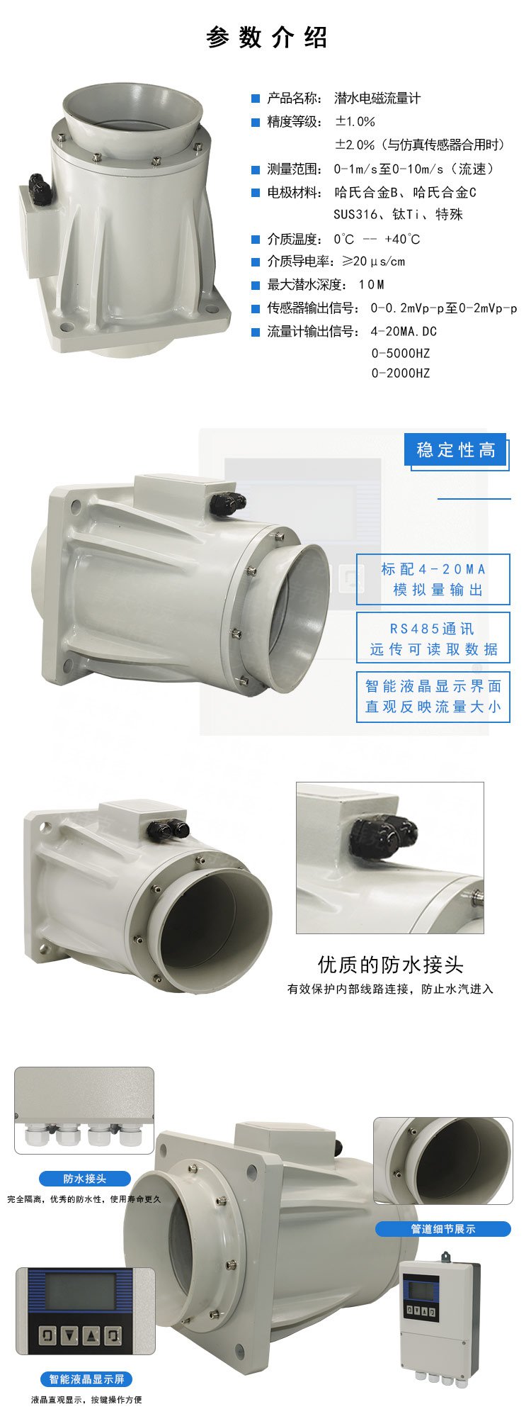 1、潛水型電磁流量計(jì)結(jié)構(gòu)簡單,無可動(dòng)部件,具有很強(qiáng)的抗污、抗堵或抗腐蝕能力,因此可在含有懸浮物或粘結(jié)物的流體中使用;